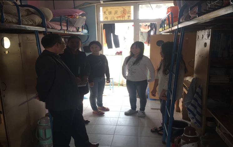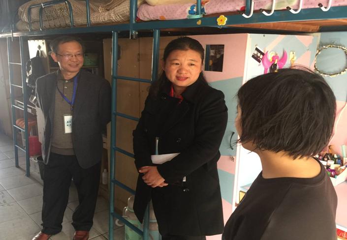 本网讯 为了切实的做好党员联系班级工作,深入学生、关怀学生,11月8日下午,校党委委员、纪委书记吴志华与软件工程系党总支副书记王莉娟一同前往所联系班级学生宿舍走访,软件工程系辅导员马宇飞陪同前往。