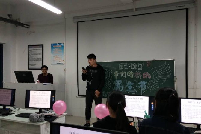 软件工程系的女生们正在积极地为“男生节”做着准备,准备给男生们一个惊喜。晚19时,活动正式开始,各班都进行了精心的布置。来到本部活动现场,由董伊凡同学带来一首动听的love story英文歌作为开场曲,接着2017级移动应用开发班的三名女生深情的朗诵了诗歌《致橡树》。随后开展了一系列小游戏,同学都积极参与,在共同的努力下完成了游戏,气氛轻松愉快。来到秀山活动现场,有的班级女生给男生们准备了小礼物,让男生们激动不已;有的班级女生为男生们准备了很多精彩的节目,一字马、飙高音……让同学们看得直呼精彩。最后,在男生们合唱的《我的好兄弟》的歌声中,活动圆满结束。